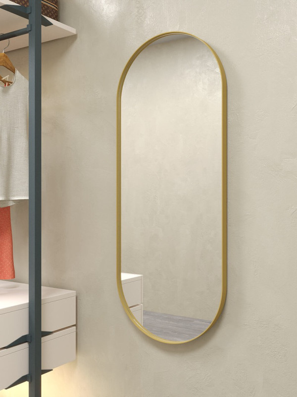 Дизайнерское овальное настенное зеркало Glass Memory Harmony в металлической раме золотого цвета в Лабинске