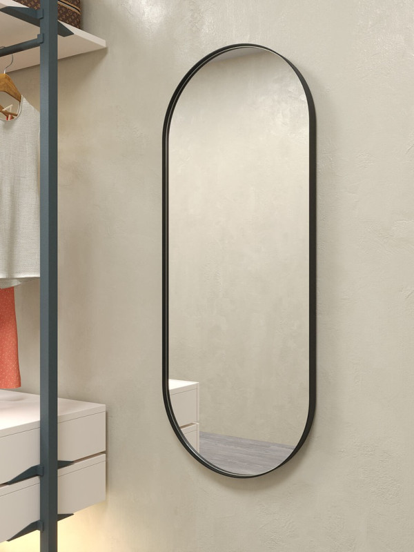 Дизайнерское овальное настенное зеркало Glass Memory Harmony в металлической раме черного цвета в Лабинске